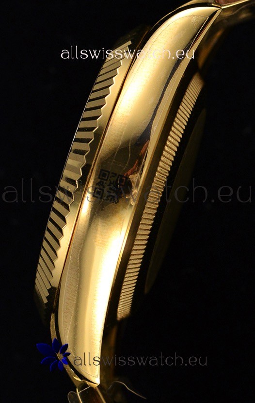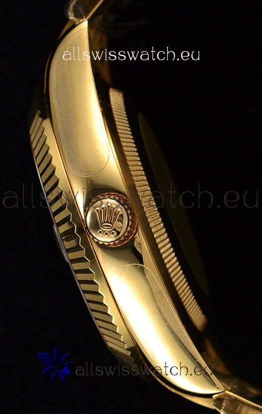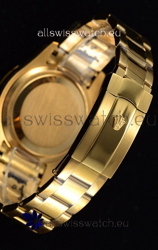 18K Yellow Gold Plating on 316L Stainless Steel Case with Solid Case Back complete with Rolex Markings and Engravings