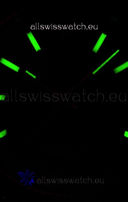 Black Dial with Centered Sub Dial for Worldtimer Function. Super Lumed Green Hour Markers
