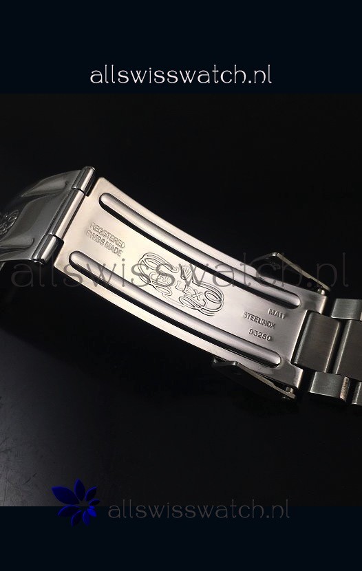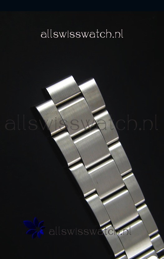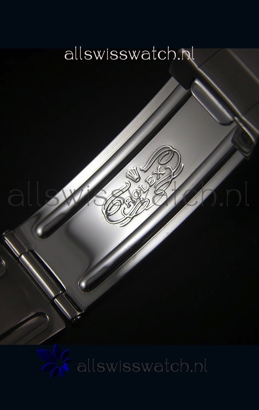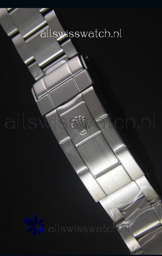 316L Stainless Steel Strap linked with Screws for easy adjustment with Folding Clasps with Divers Extention complete with Rolex Markings and Engravings as per the Original.