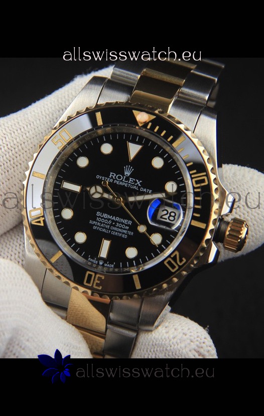 Rolex Submariner Japanese Replica Watch 904L 2 Tone Yellow Gold - Ceramic Bezel in Black