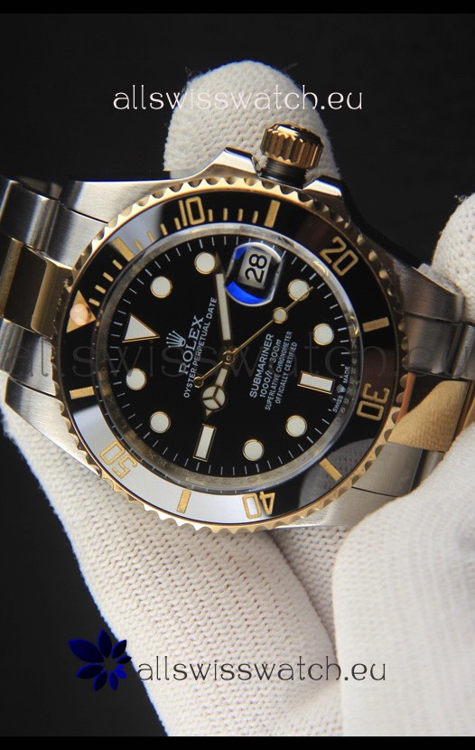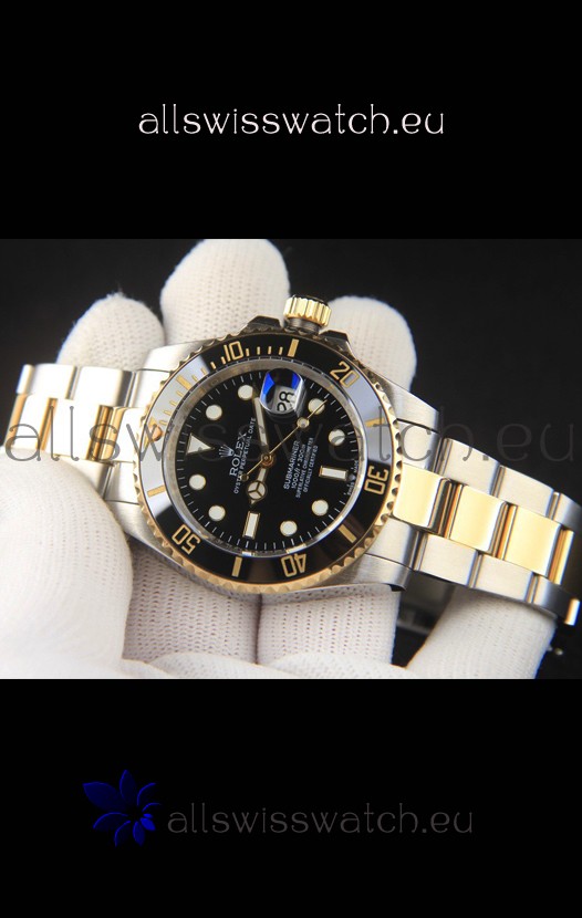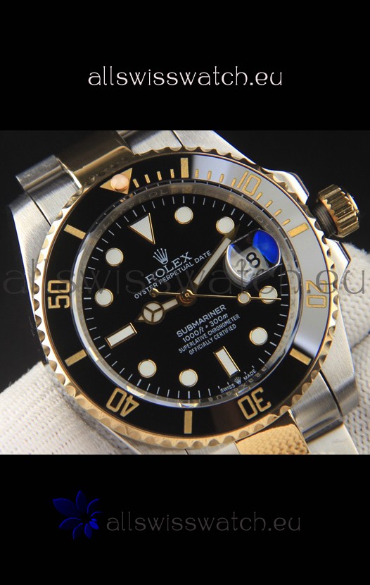 You're reviewing: Rolex Submariner Japanese Replica Watch 904L 2 Tone Yellow Gold - Ceramic Bezel in Black