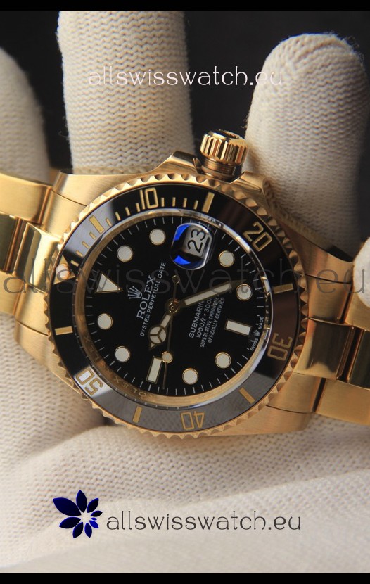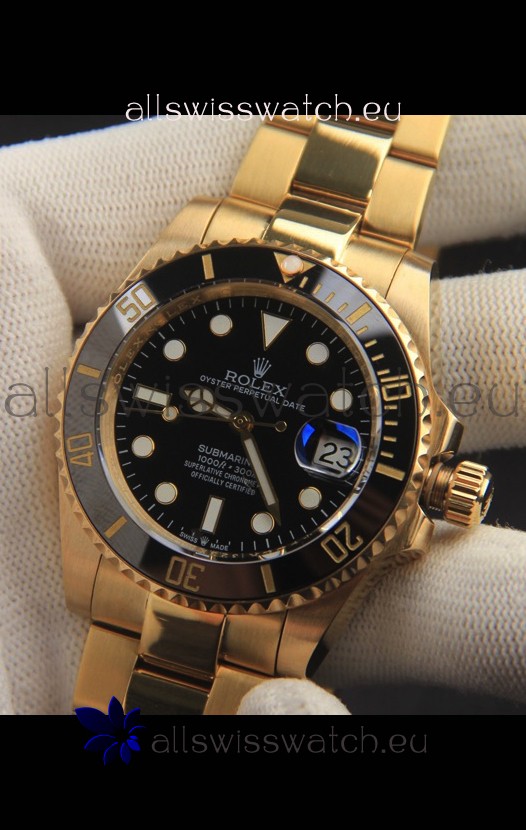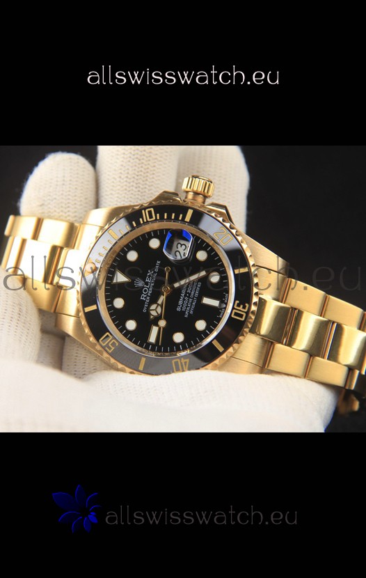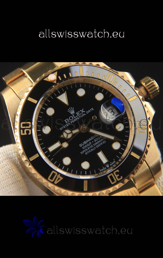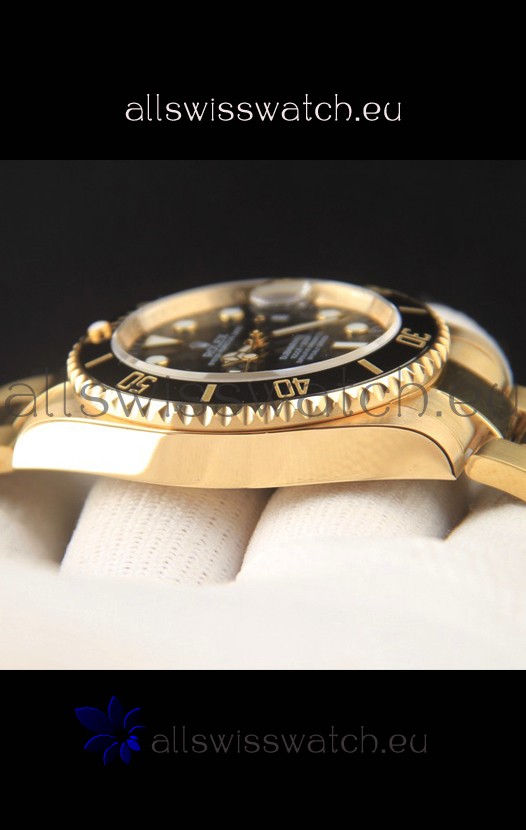18K Yellow Gold Plating on 904L Stainless Steel Casing, Ceramic Bezel with Solid Rear back Case