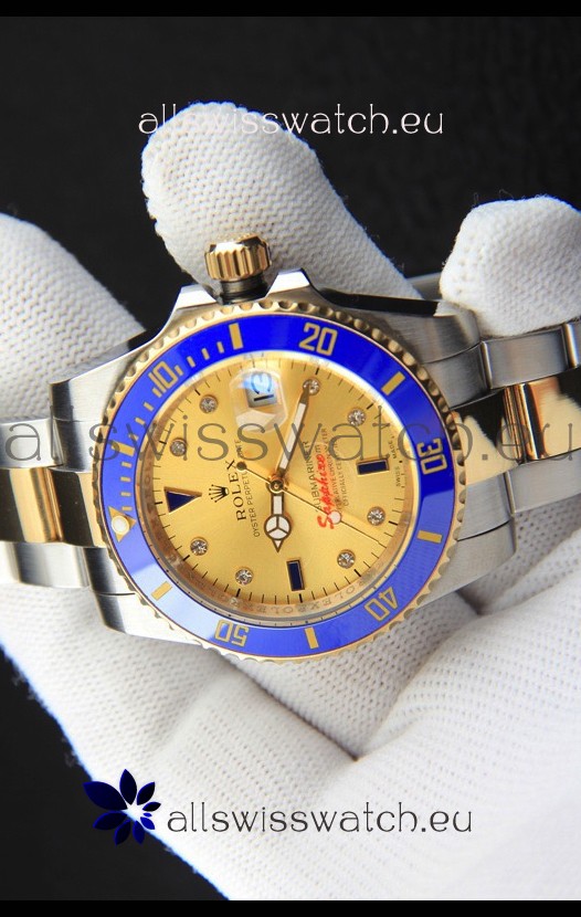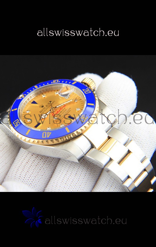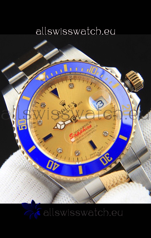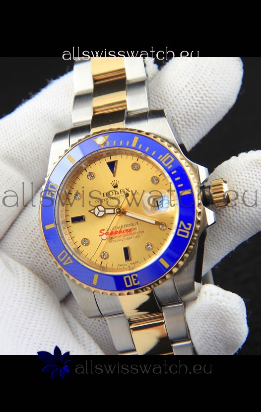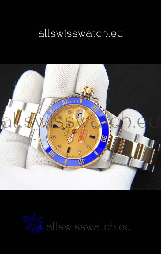 You're reviewing: Rolex Submariner Japanese Replica Watch in 2 Tone Yellow Gold Casing Gold Dial