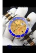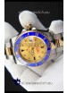 18K Two Tone Yellow Gold Plating on 904L Stainless Steel Casing, Ceramic Bezel with Solid Rear back Case