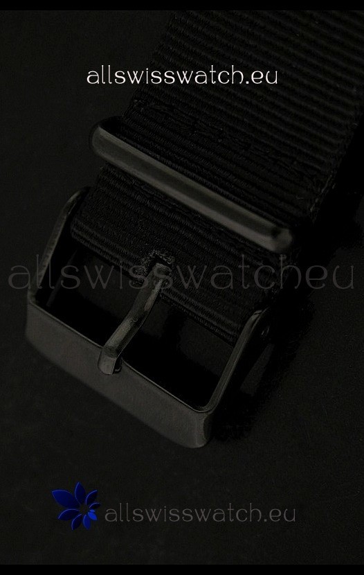 Strap: Military Style Black Nylon Strap with Tang Buckle