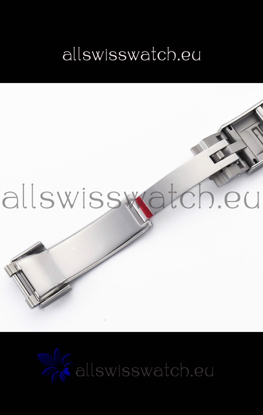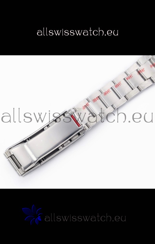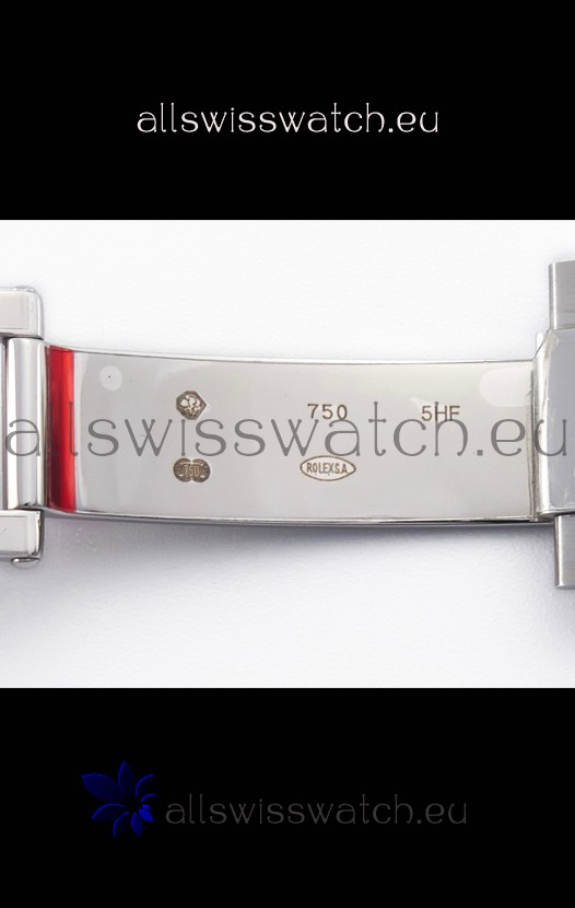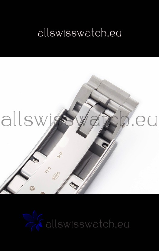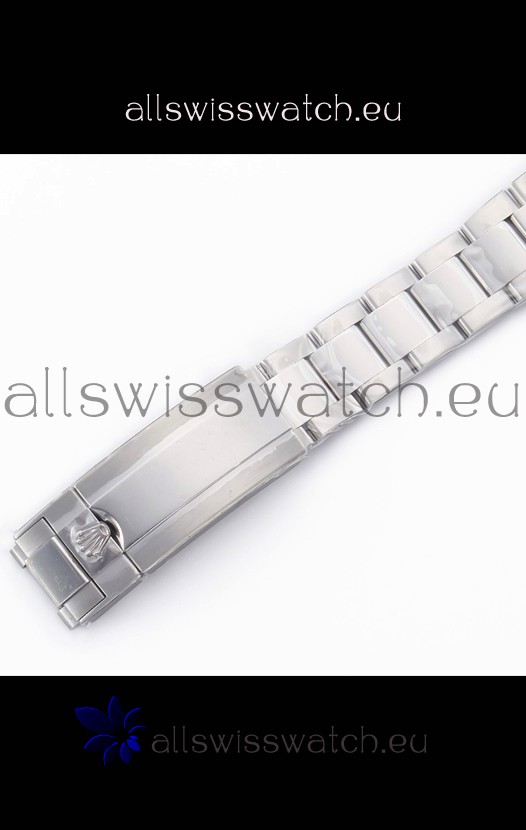 White Gold Plating on 904L Stainless Steel strap with New Rolesor Folding Clasp. Bracelet's been updated with Springs/Black Ceramic Ball Bearings for a much smoother interlocking.