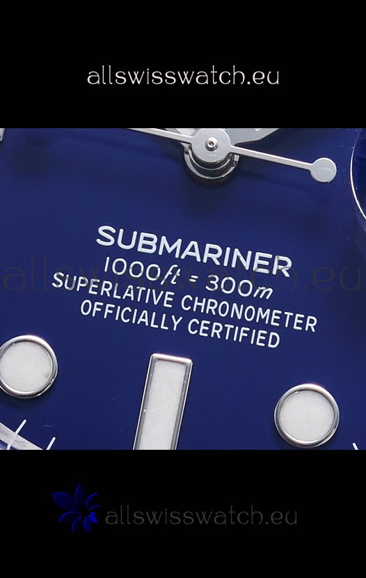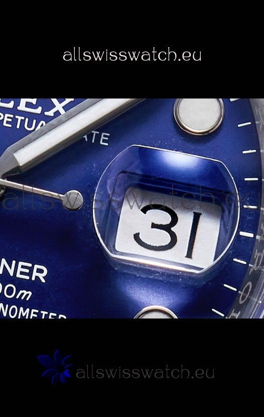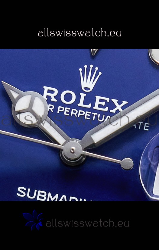 Blue Dial with Super-Luminova appied to Hands. Shading of Dial is exactly as per the genuine. Hour Markers and Bezel Pearl. Dial Font is Crisp and is now on Par with the Originals.