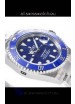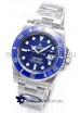 Uni-Directional Bezel with Blue Ceramic Inserts with Updated Crisp Font over all previous versions. Unidirectional 120 Click Rotating Bezel with Ceramic Inserts. New Bezel Inserts has platinum coating applied to Dive Markers and Bezel Pearl is now Sapphire-Clad as per the Original Rolex Submariner.