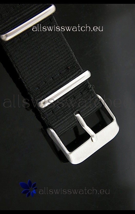 Strap: Military Style Black Nylon Strap with Tang Buckle