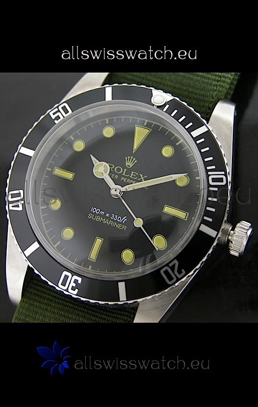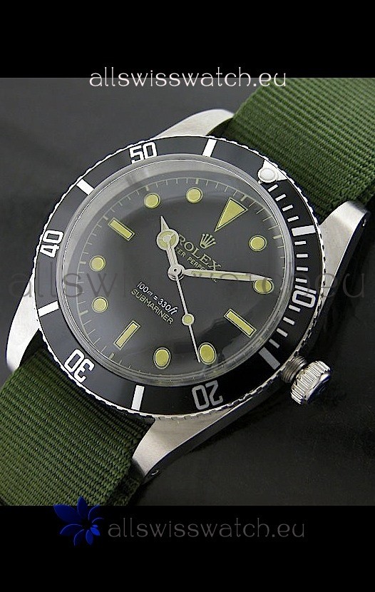 Rolex Submariner Swiss Replica Watch in Domed Crystal Green Nylon Strap