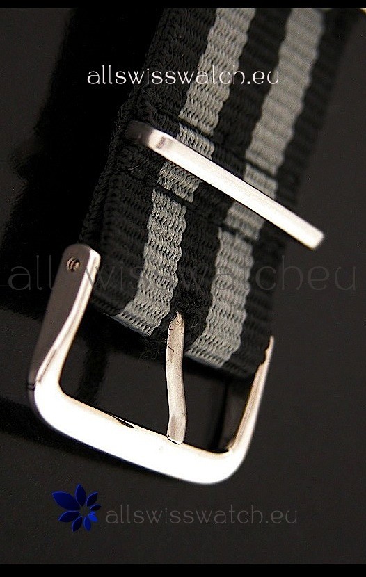 Strap: Zebra-Stripe Nylon Strap with Tang Buckle