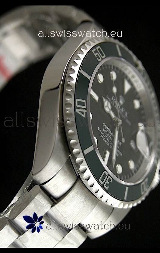 Other Feartures: Genuine Scratch Proof Ceramic Bezel, 2.5 Magnification Lens on Date Window, Laser Etched Rolex Crown at 6 O'Clock and Scratch Proof Sapphire Crystal with Double Layer Anti Reflective Coating