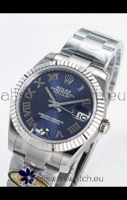 Rolex Super Clone Datejust ETA 2688 Movement 31MM Stainless Steel Blue Roman Dial Watch