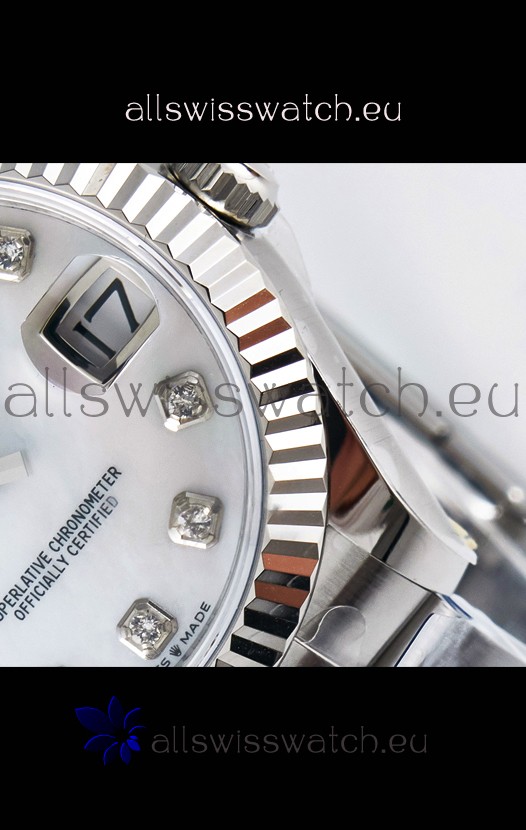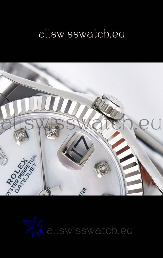 White Mother of Pearl Dial with Diamonds Hour Numerals with 2.5X Date Maginification Indicator