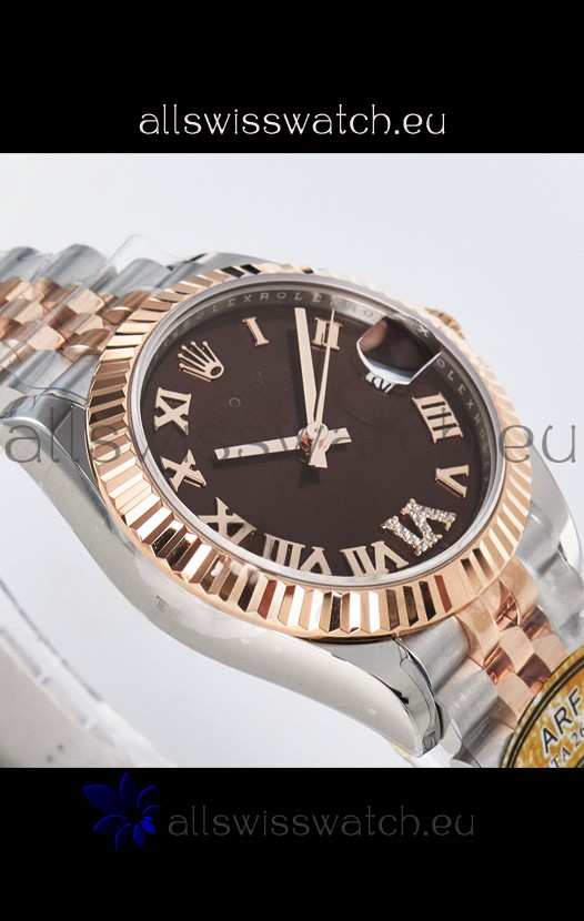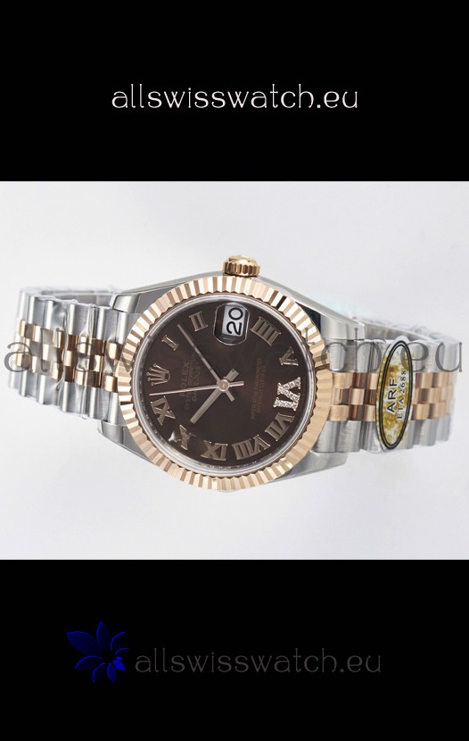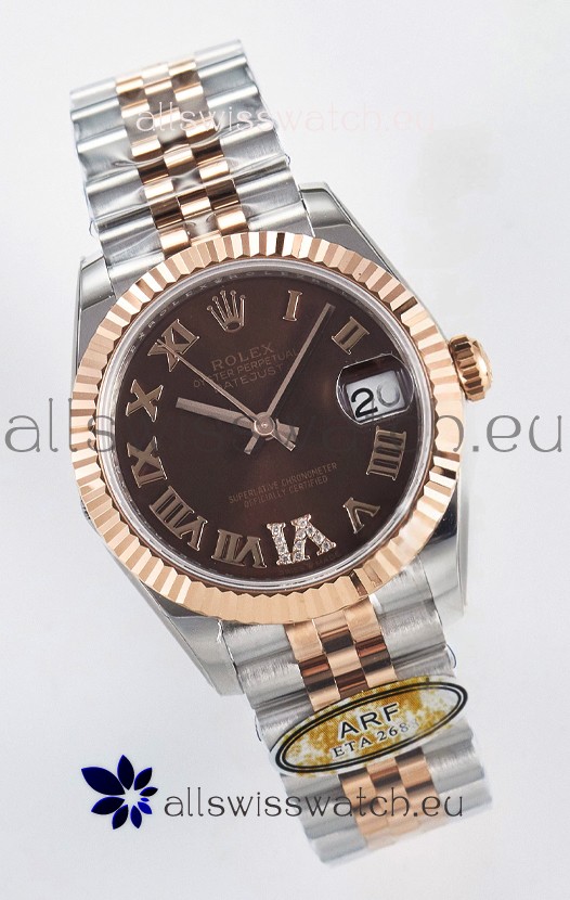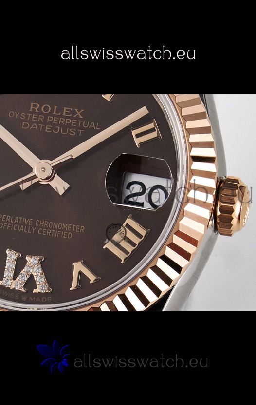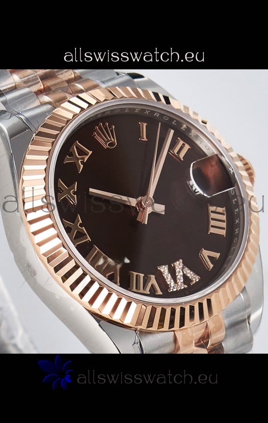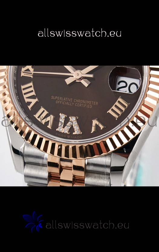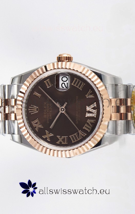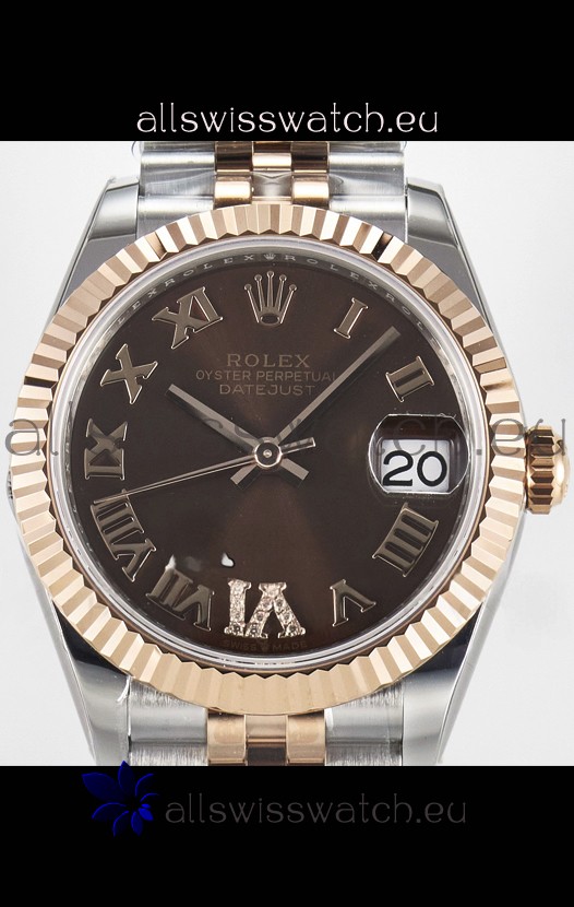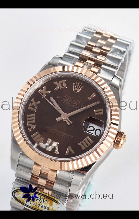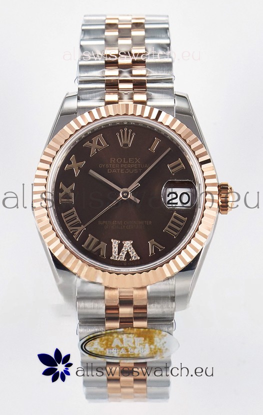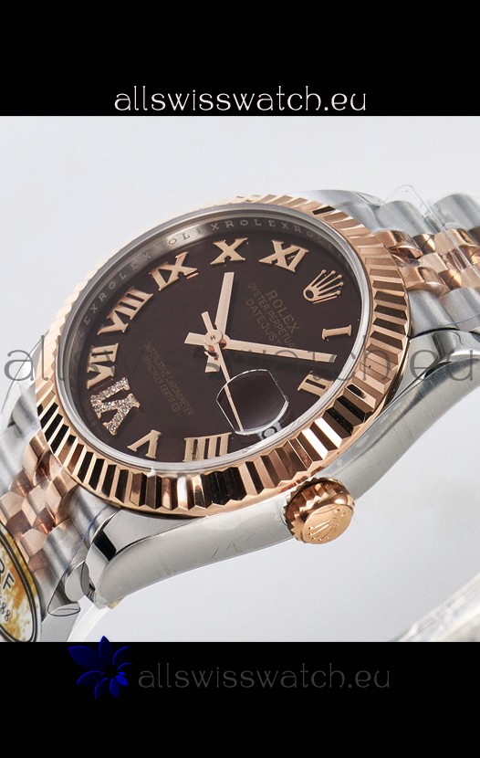 Rolex Super Clone Datejust ETA 2688 Movement 31MM Two Tone Rose Gold Swiss Brown Dial