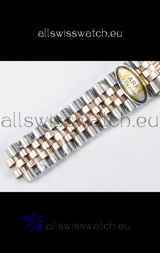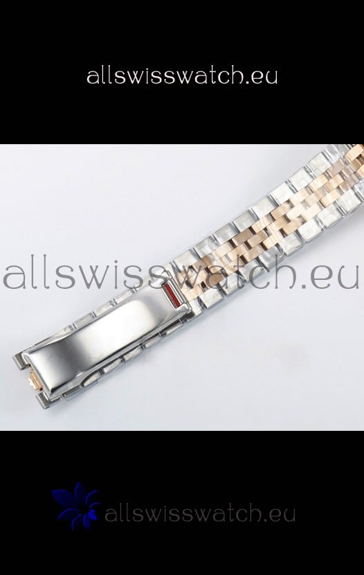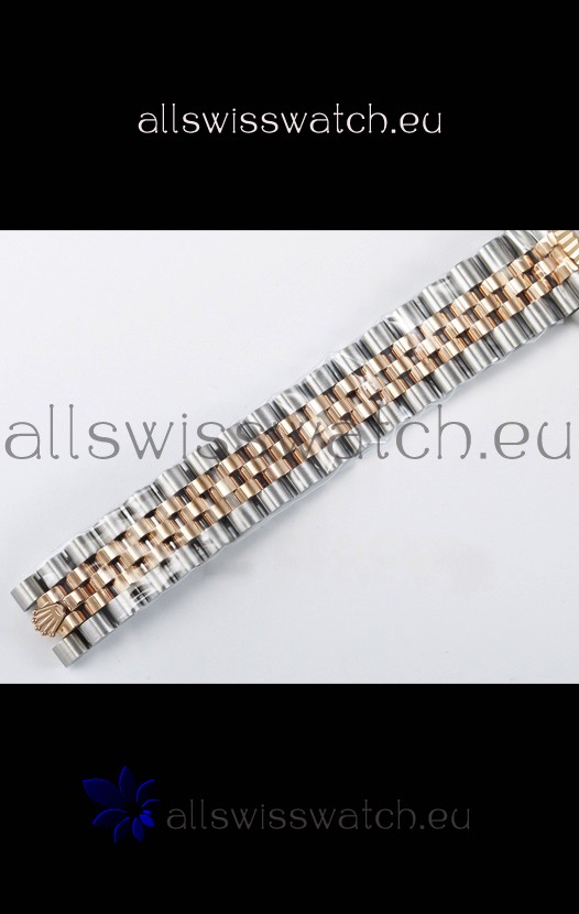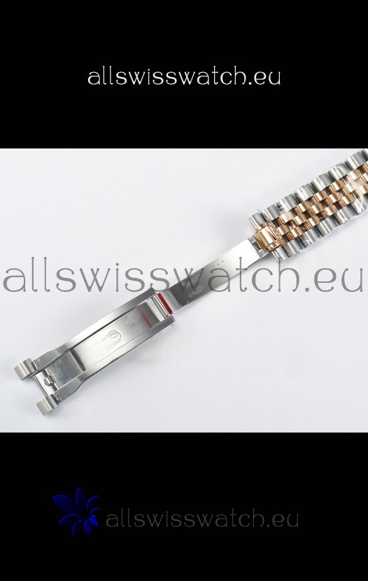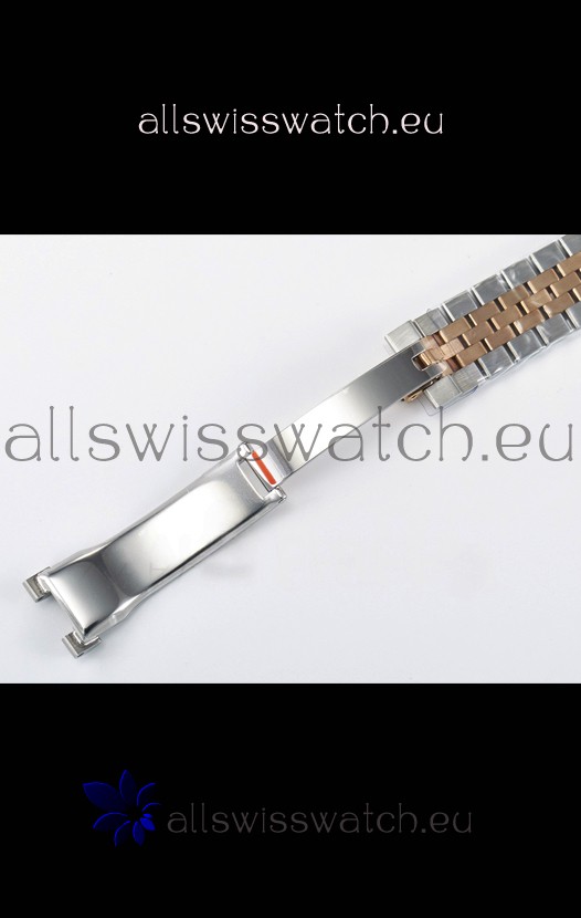 18K Rose Gold Plating on 904L Stainless Steel strap with New Style Rolesor Deployant Buckle, End links match up Flush with the Case. - A Much Improved Datejust Strap Version