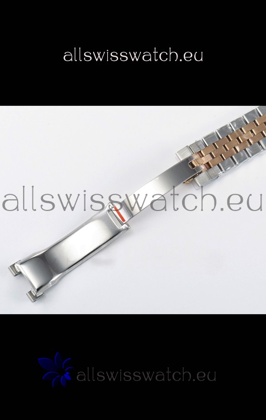 18K Rose Gold Plating on 904L Stainless Steel strap with New Style Rolesor Deployant Buckle, End links match up Flush with the Case. - A Much Improved Datejust Strap Version