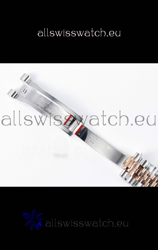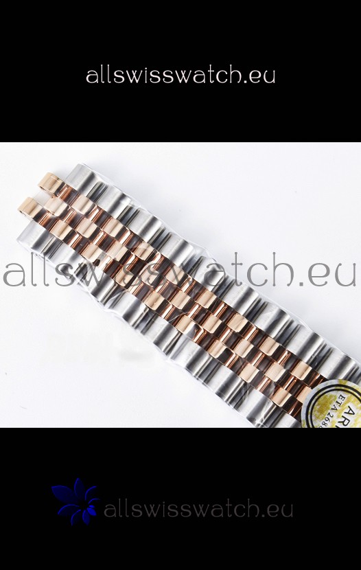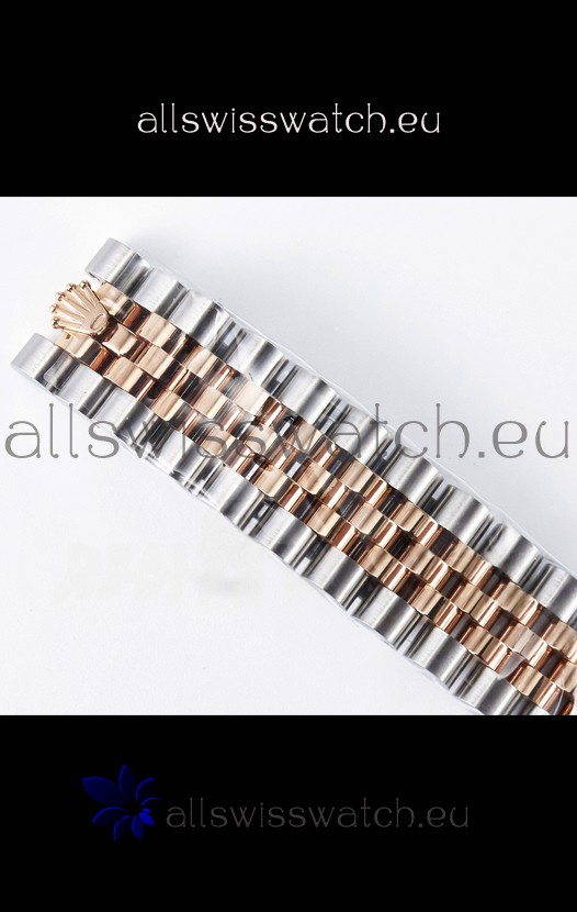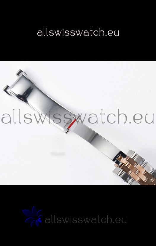 18K Rose Gold Plating on 904L Stainless Steel strap with New Style Rolesor Deployant Buckle, End links match up Flush with the Case. - A Much Improved Datejust Strap Version