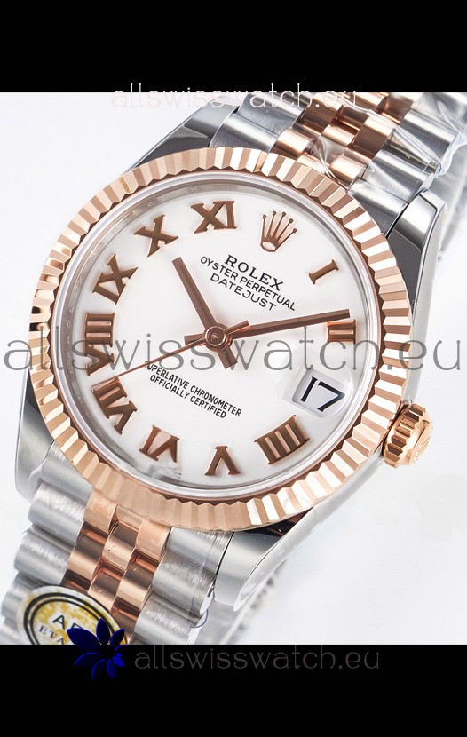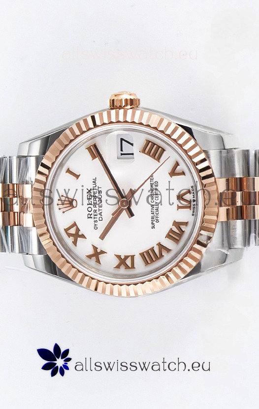 Rolex Super Clone Datejust ETA 2688 Movement 31MM Two Tone Rose Gold Swiss White Dial