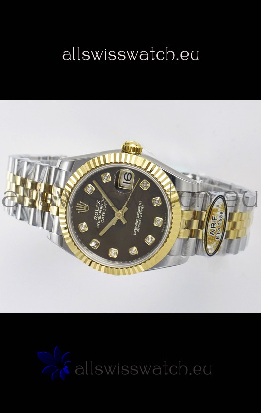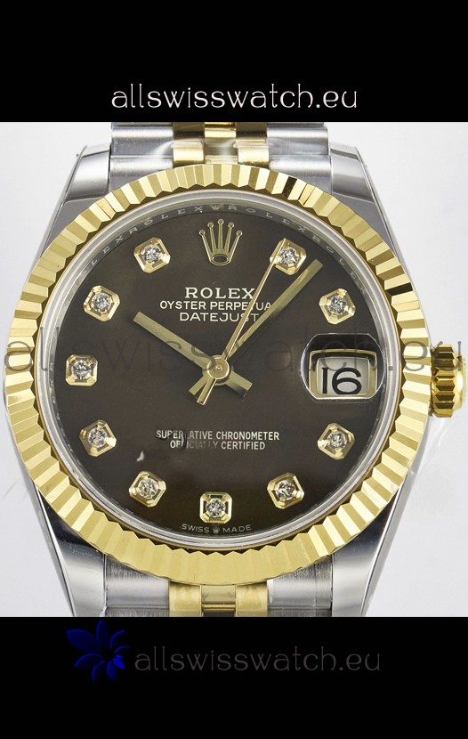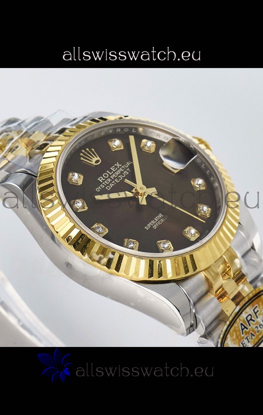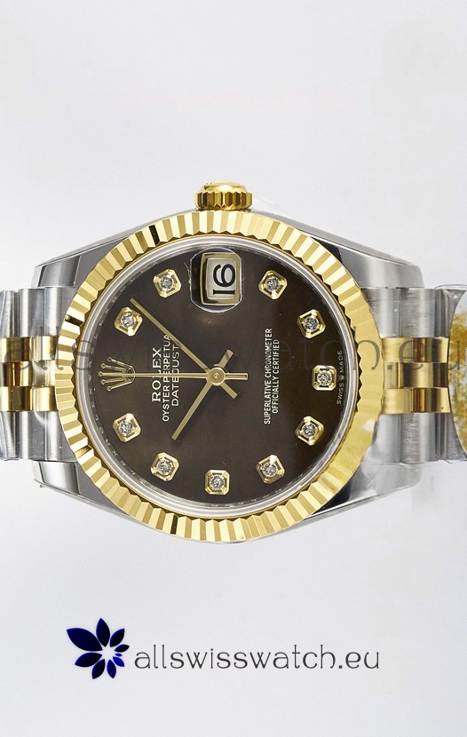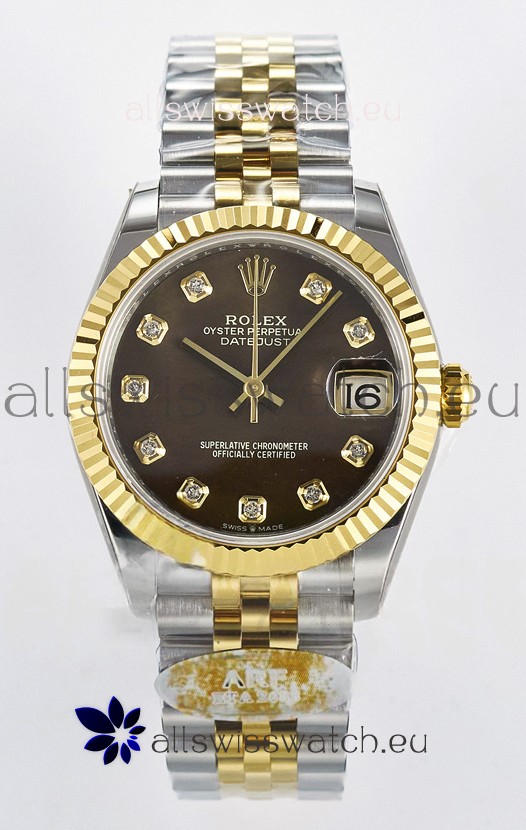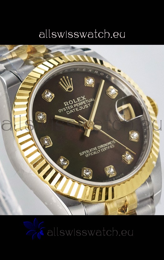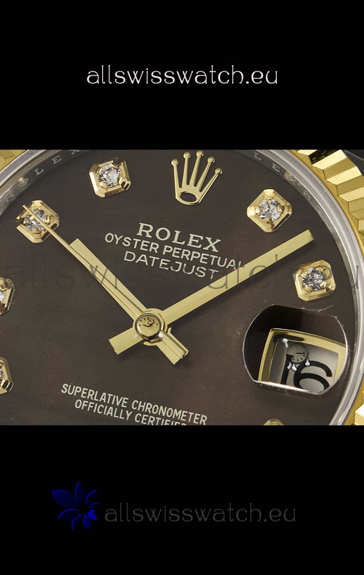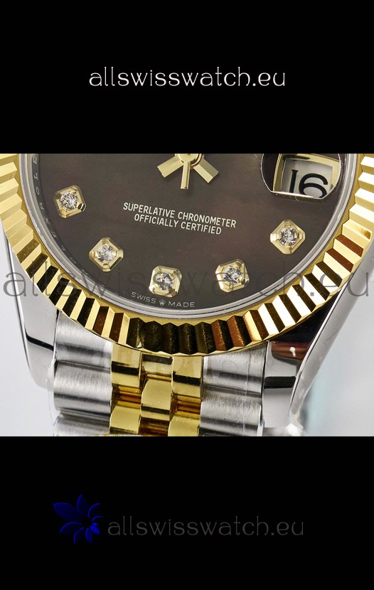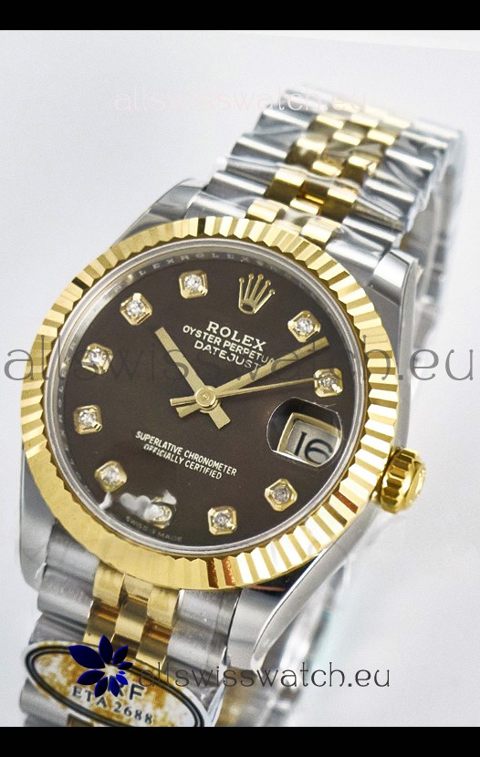 Rolex Super Clone Datejust ETA 2688 Movement 31MM Two Tone Yellow Gold Swiss Brown Dial
