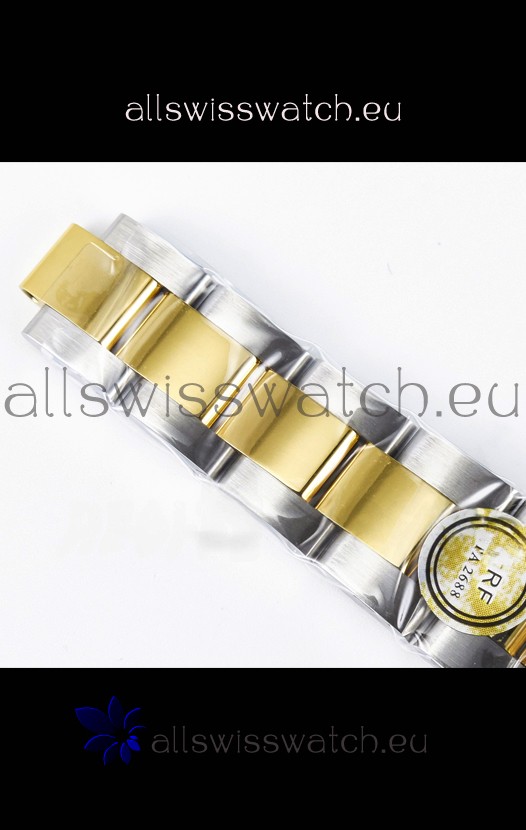 18K Yellow Gold Plating on 904L Stainless Steel strap with New Style Rolesor Deployant Buckle, End links match up Flush with the Case. - A Much Improved Datejust Strap Version