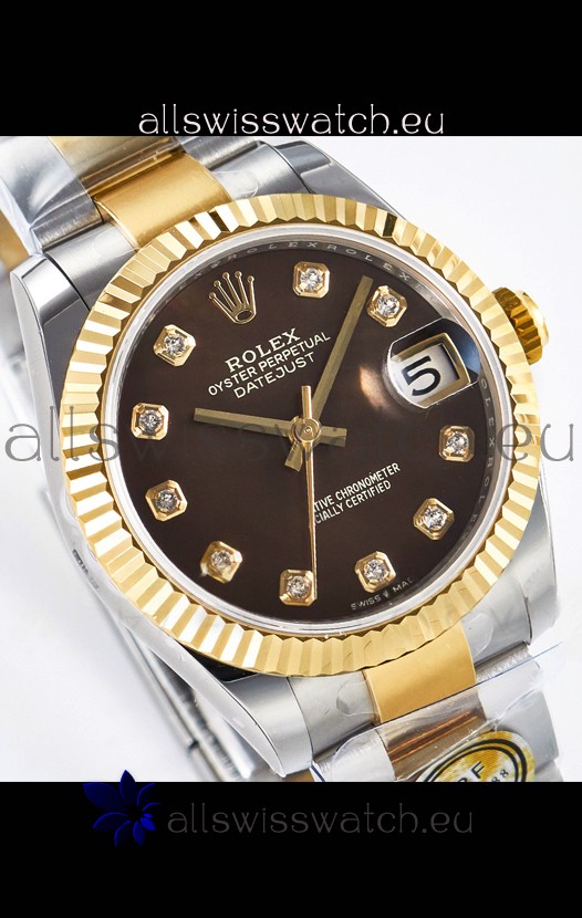 Rolex Super Clone Datejust ETA 2688 Movement 31MM Two Tone Yellow Gold Swiss Brown Dial