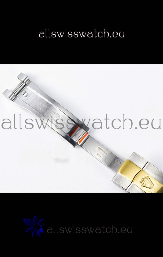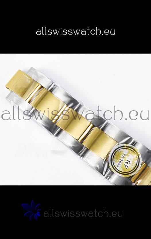18K Yellow Gold Plating on 904L Stainless Steel strap with New Style Rolesor Deployant Buckle, End links match up Flush with the Case. - A Much Improved Datejust Strap Version