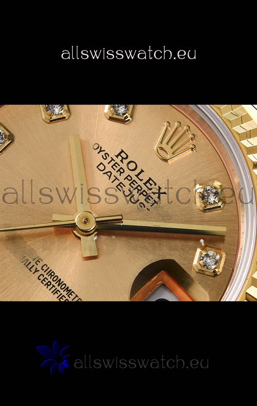 Yellow Gold Dial with Diamonds Hour Numerals with 2.5X Date Maginification Indicator