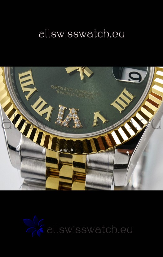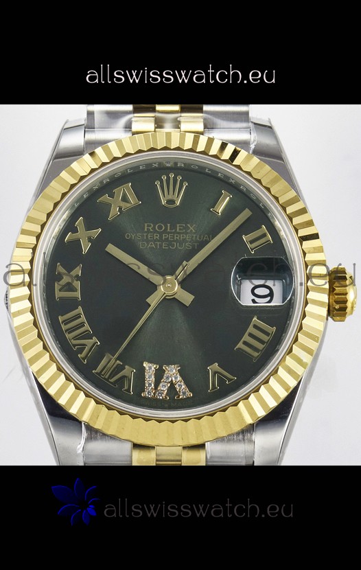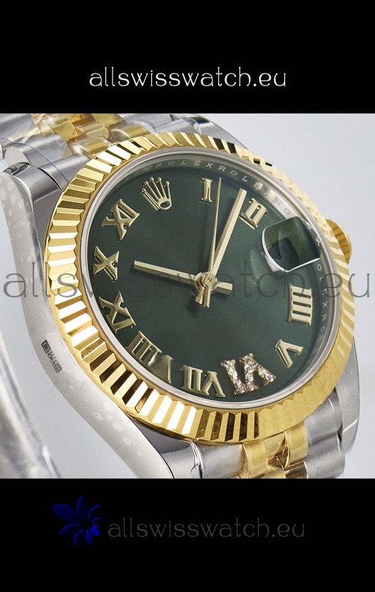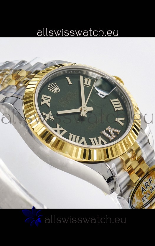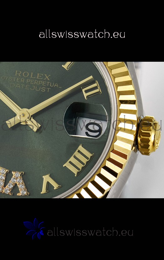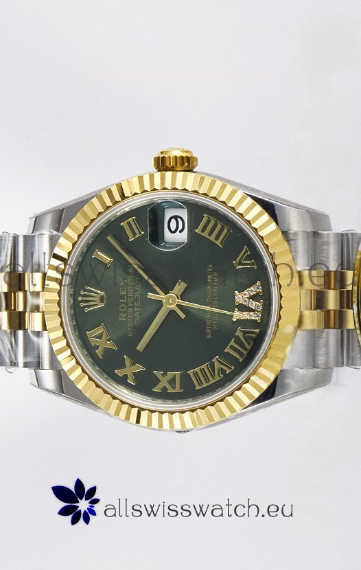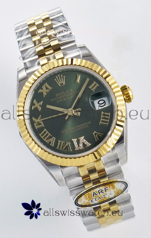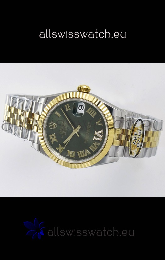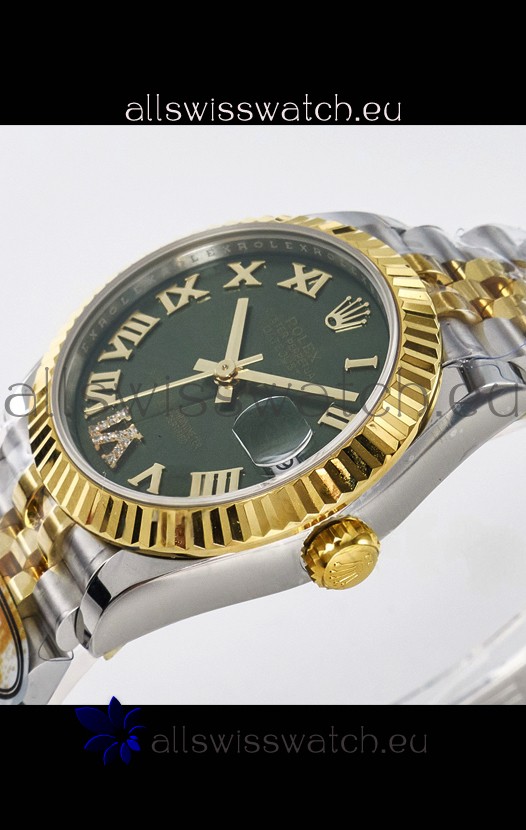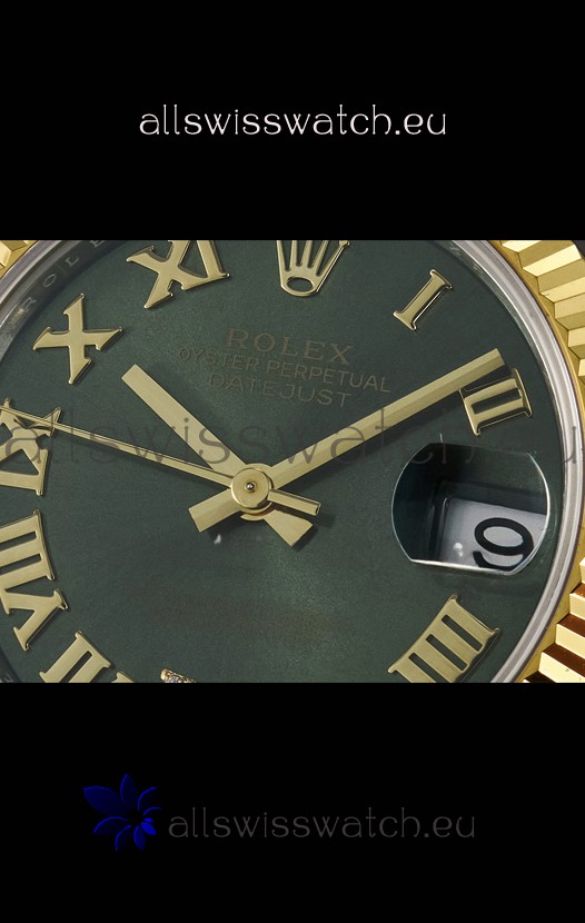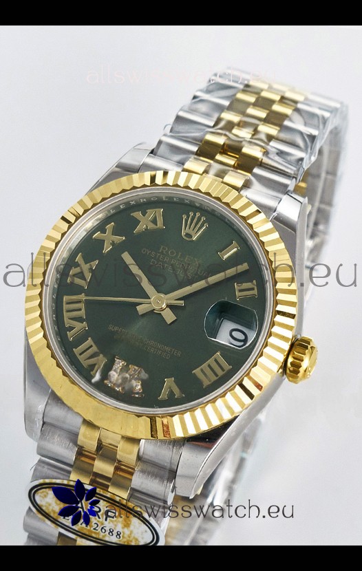 Rolex Super Clone Datejust ETA 2688 Movement 31MM Two Tone Yellow Gold Swiss Green Dial