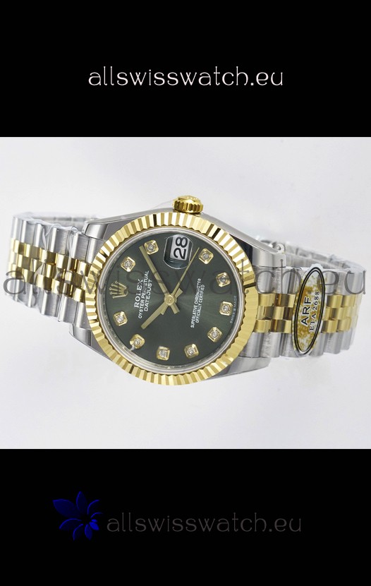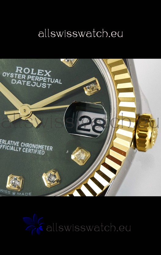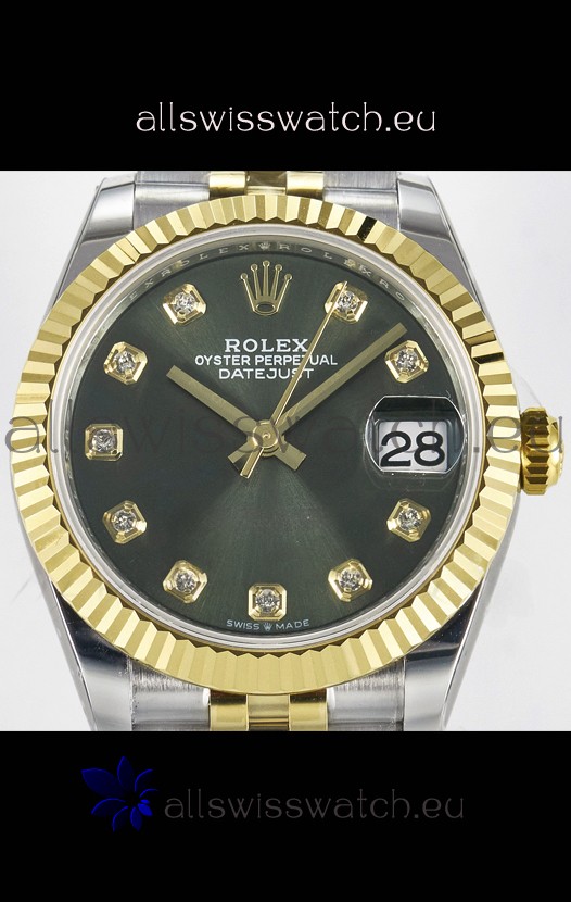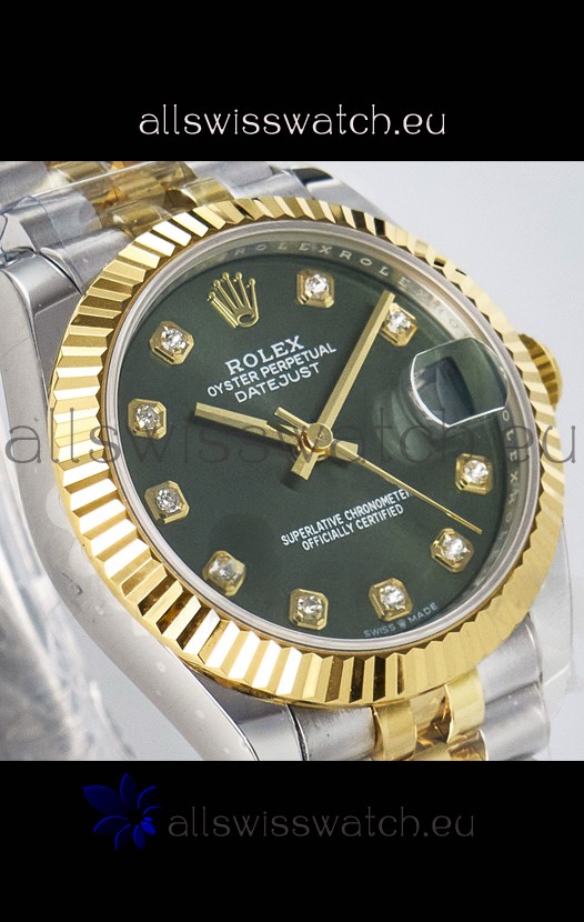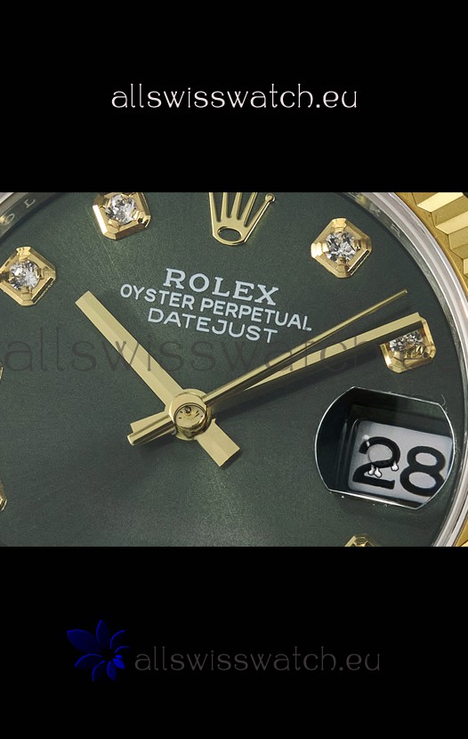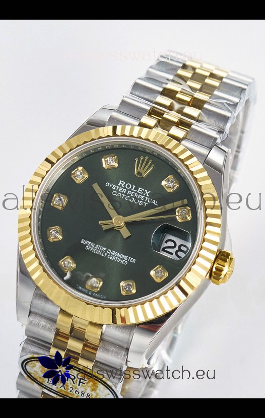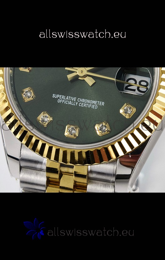 Rolex Super Clone Datejust ETA 2688 Movement 31MM Two Tone Yellow Gold Swiss Green Dial