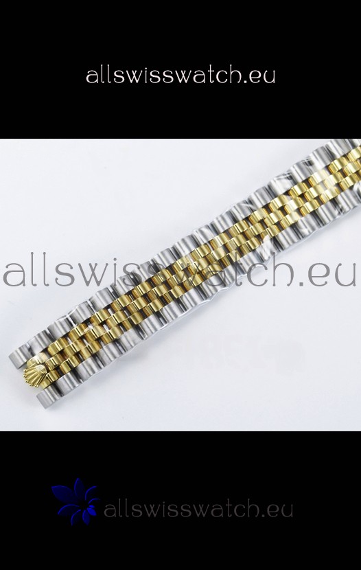 18K Yellow Gold Plating on 904L Stainless Steel strap with New Style Rolesor Deployant Buckle, End links match up Flush with the Case. - A Much Improved Datejust Strap Version