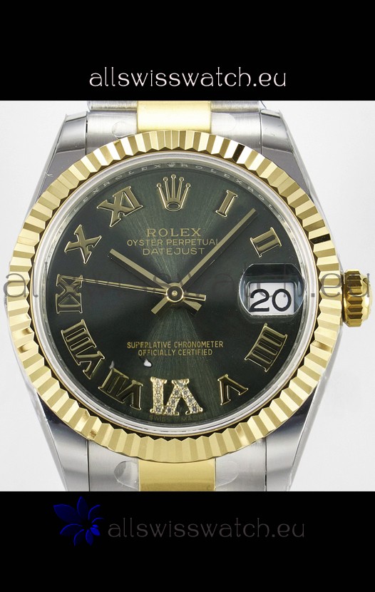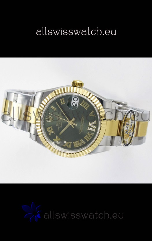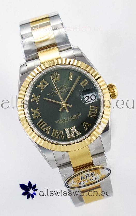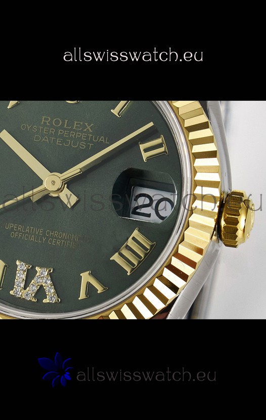 Rolex Super Clone Datejust ETA 2688 Movement 31MM Two Tone Yellow Gold Swiss Green Dial