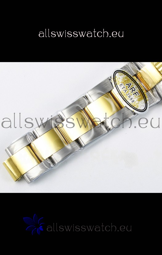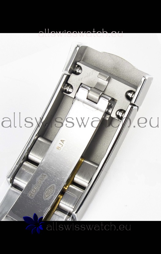 18K Yellow Gold Plating on 904L Stainless Steel strap with New Style Rolesor Deployant Buckle, End links match up Flush with the Case. - A Much Improved Datejust Strap Version