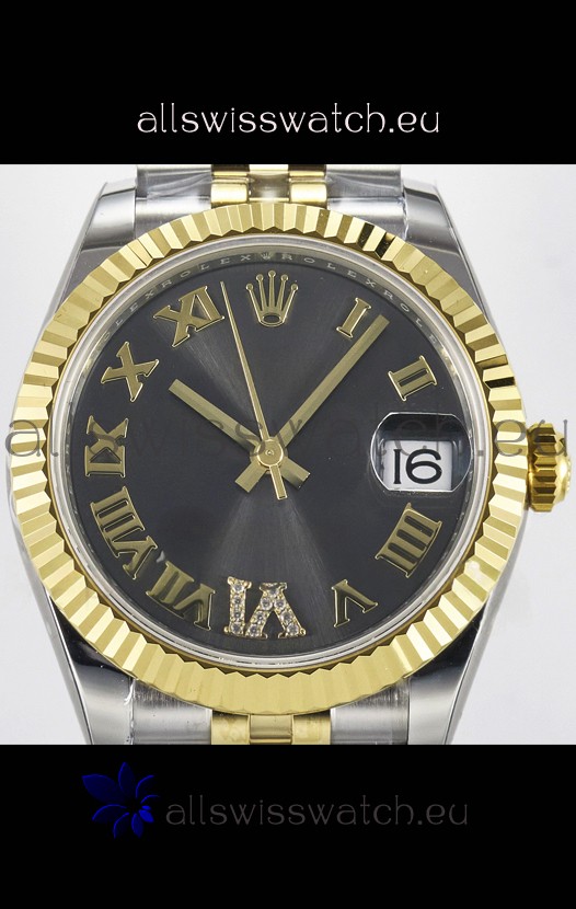 Rolex Super Clone Datejust ETA 2688 Movement 31MM Two Tone Yellow Gold Swiss Grey Dial