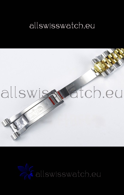 18K Yellow Gold Plating on 904L Stainless Steel strap with New Style Rolesor Deployant Buckle, End links match up Flush with the Case. - A Much Improved Datejust Strap Version