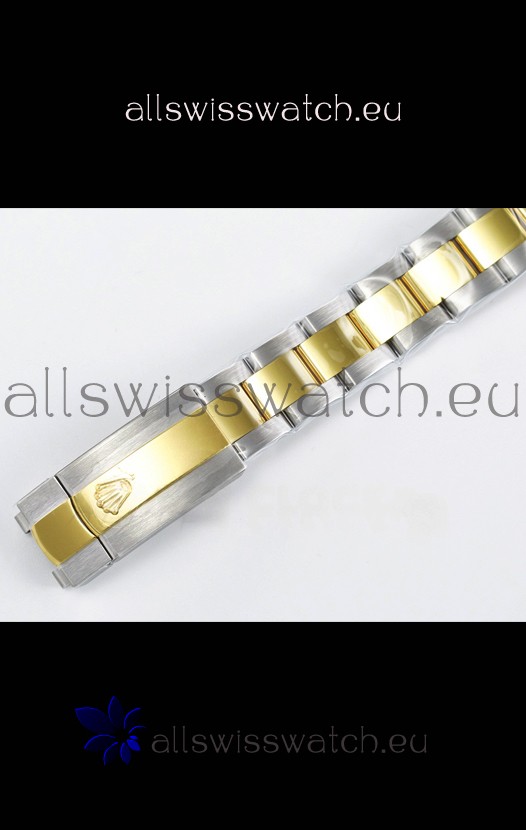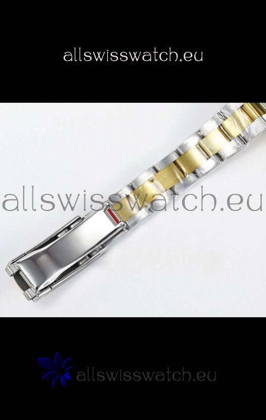 18K Yellow Gold Plating on 904L Stainless Steel strap with New Style Rolesor Deployant Buckle, End links match up Flush with the Case. - A Much Improved Datejust Strap Version
