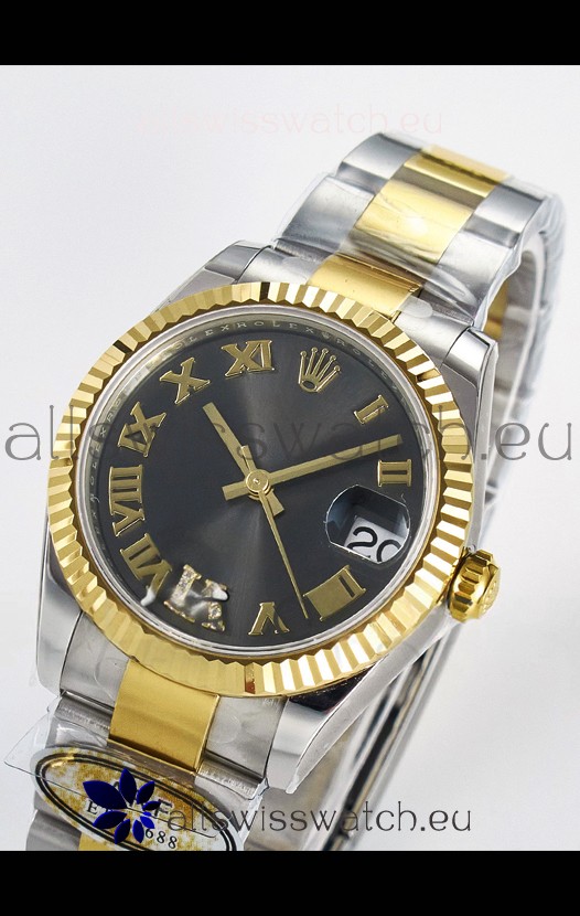 Rolex Super Clone Datejust ETA 2688 Movement 31MM Two Tone Yellow Gold Swiss Grey Dial