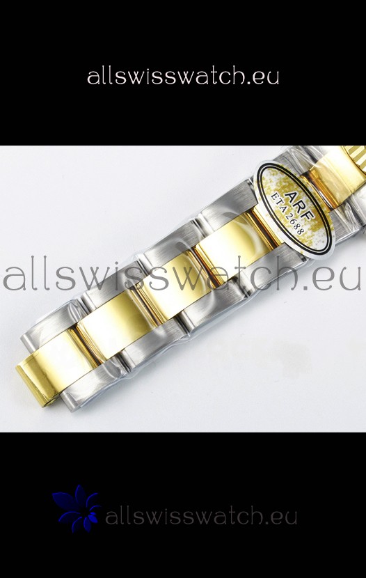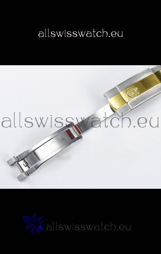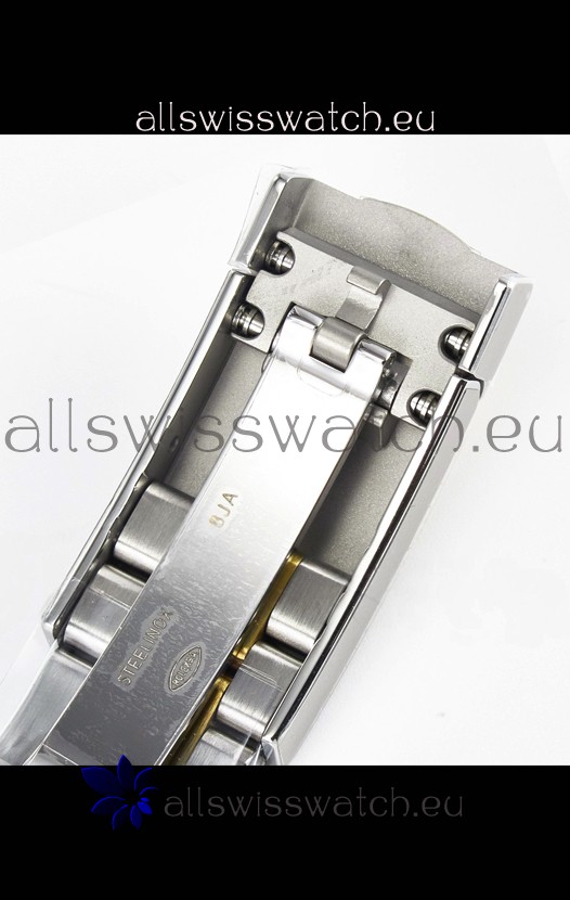 18K Yellow Gold Plating on 904L Stainless Steel strap with New Style Rolesor Deployant Buckle, End links match up Flush with the Case. - A Much Improved Datejust Strap Version