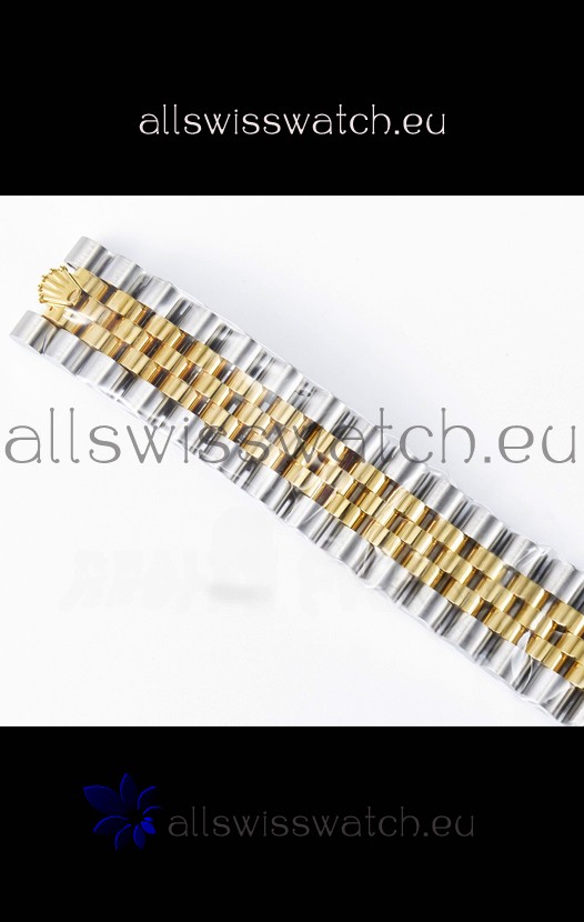 18K Yellow Gold Plating on 904L Stainless Steel strap with New Style Rolesor Deployant Buckle, End links match up Flush with the Case. - A Much Improved Datejust Strap Version