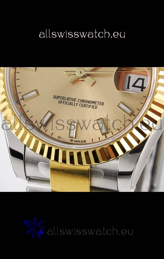 You're reviewing: Rolex Super Clone Datejust ETA 2688 Movement 31MM Two Tone Yellow Gold Watch and Dial