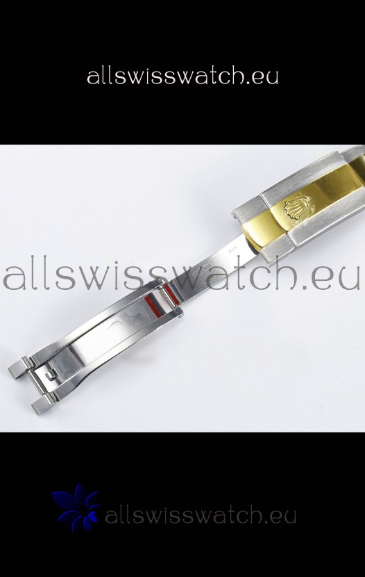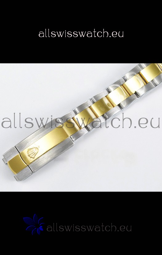 18K Yellow Gold Plating on 904L Stainless Steel strap with New Style Rolesor Deployant Buckle, End links match up Flush with the Case. - A Much Improved Datejust Strap Version