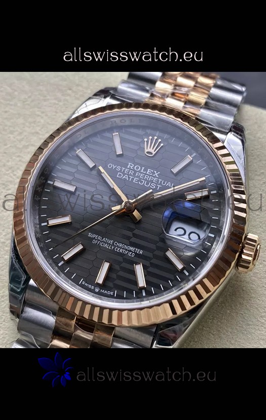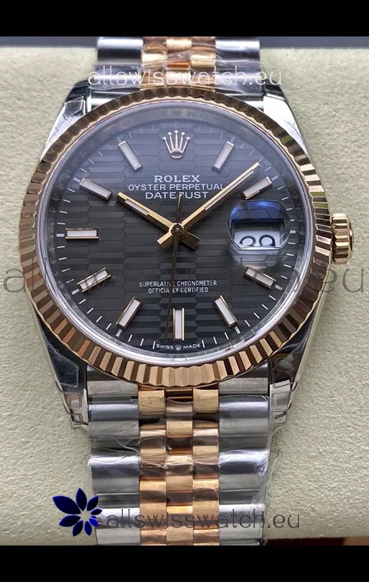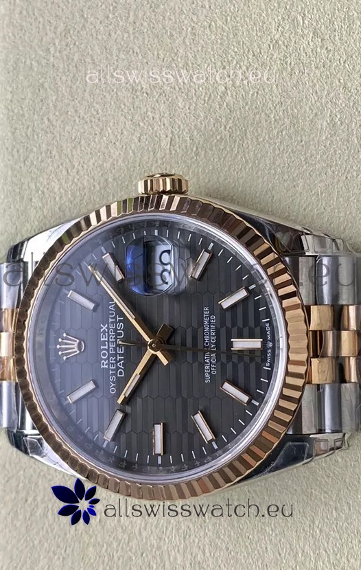 Rolex Super Clone Datejust ETA 3235 Movement 36MM Two Tone Yellow Gold Grey Fluted Dial Watch