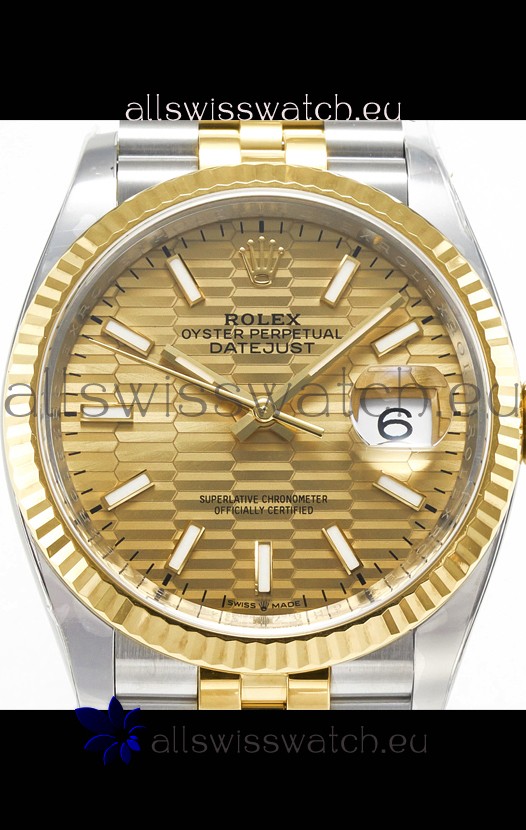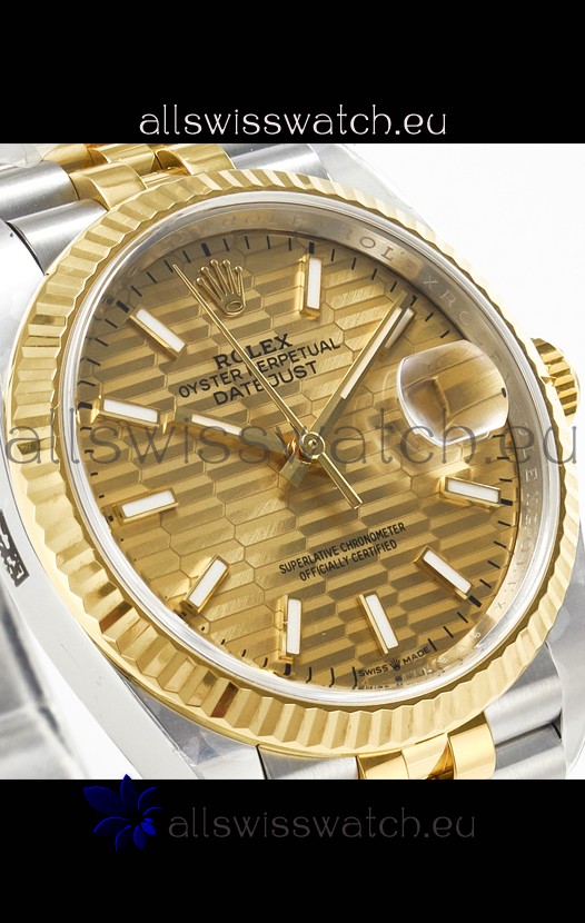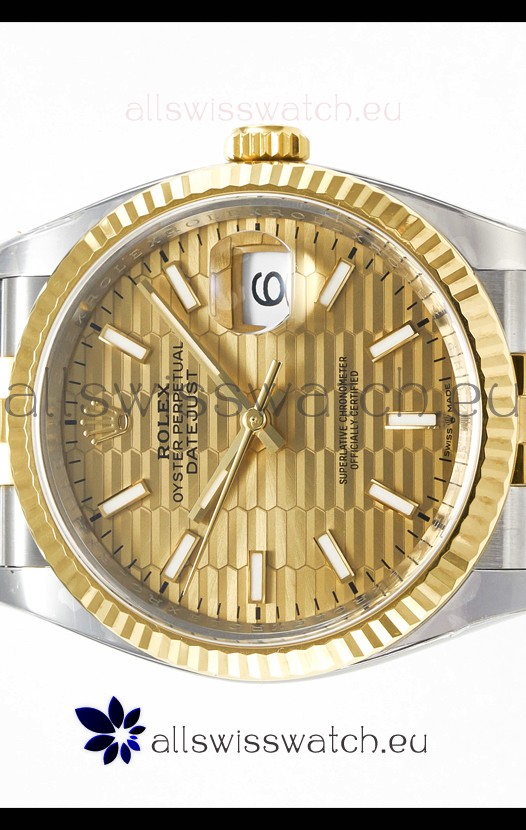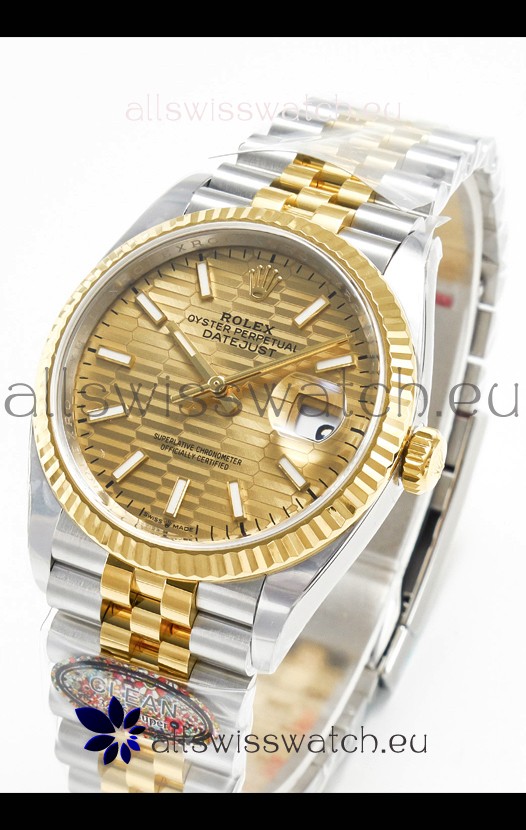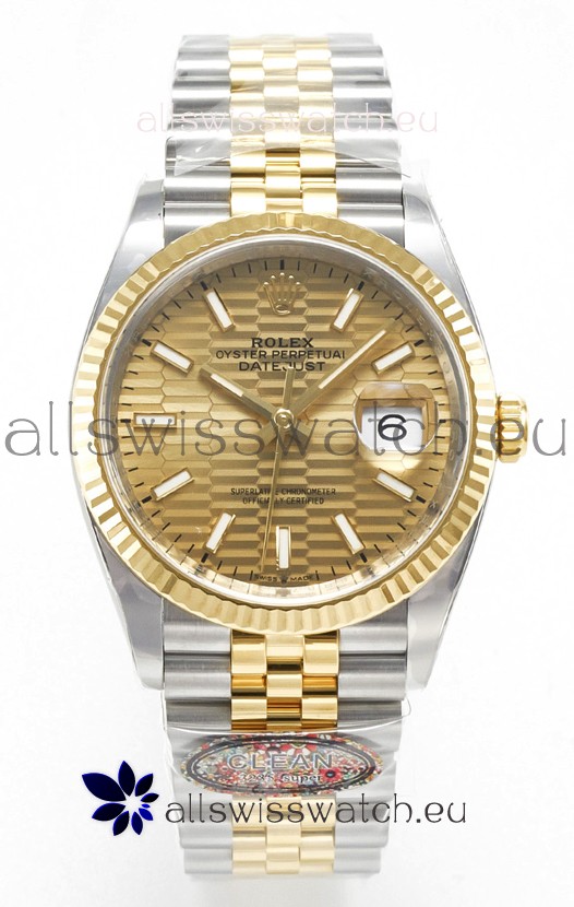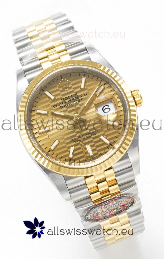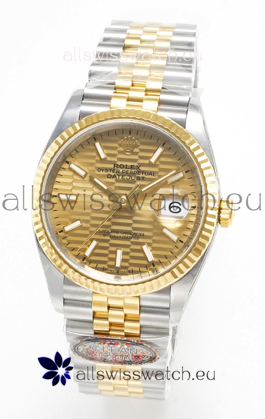 Rolex Super Clone Datejust ETA 3235 Movement 36MM Two Tone Yellow Gold Swiss Fluted Dial