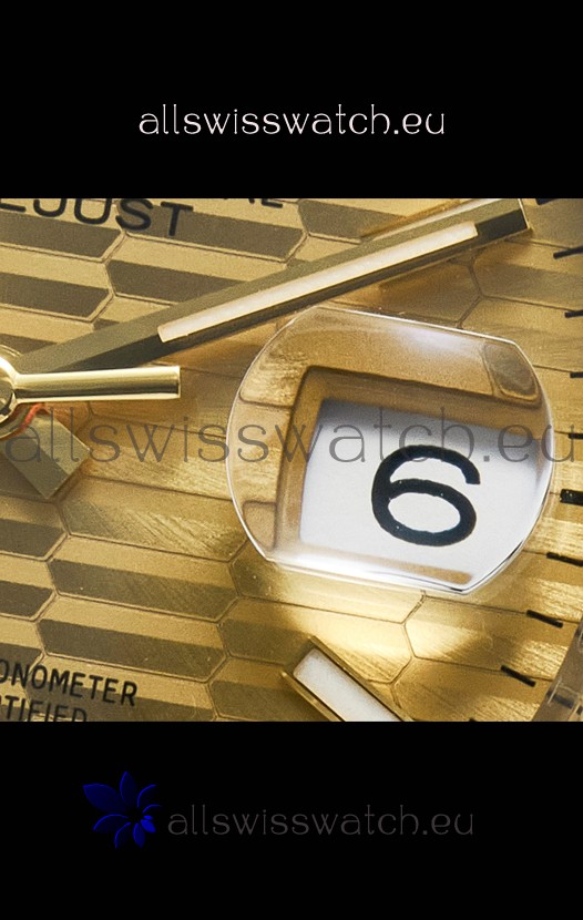 Yellow Gold Fluted Dial with Stick Hour Numerals with 2.5X Date Maginification Indicator