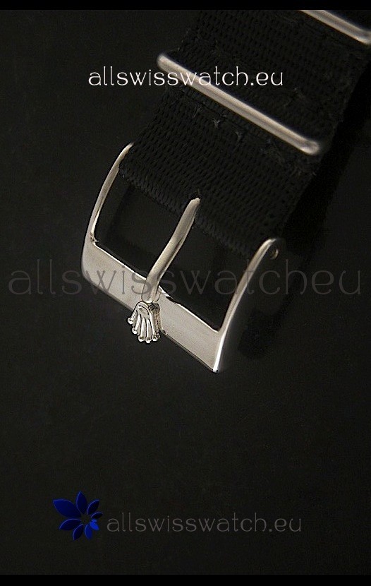 Strap: Military Style Black Nylon Strap with Tang Buckle