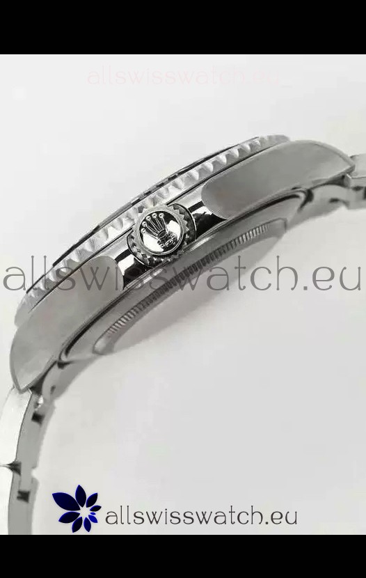 Intense Black Dial with ICE Blue Super-Luminova appied to Hour Markers. Shading of Dial is exactly as per the genuine. Dial Font is Crisp and is now on Par with the Originals.