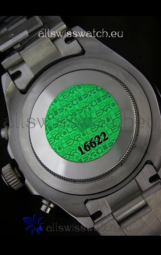 Other Feartures: Rotable Steel Bezel with Numbers, Green Hologram Sticker behind the Watch and Scratch Proof Sapphire Crystal with Rolex Engraved on the Rims of the Dial