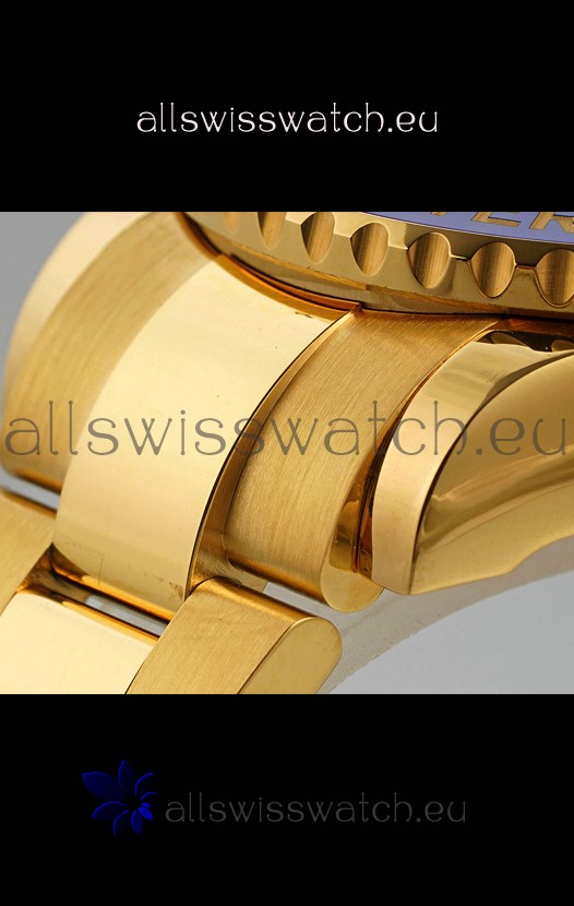 18K Yellow Gold Plating on 904L Solid Stainless Steel Strap with Folding Clasp, End links match up Flush with the Case. - A Much Improved Datejust Strap Version