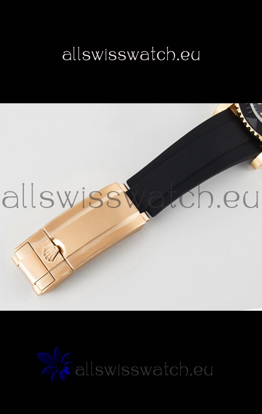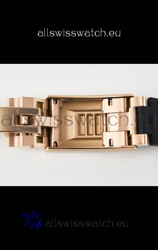 Black Rubber Strap with Rose Gold Plated Stainless Steel Clasp, Clasp has been revised and reworked for better engravings compared to the previous model. Extra Small Sized Rubber Strap is provided with the watch for Free.