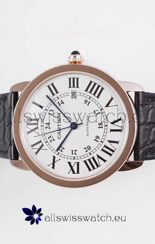 Ronde De Cartier Swiss Replica Watch - Rose Gold in White Dial